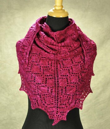 This shawl is worked with a classic top down construction technique. It starts from a small garter stitch strip of knitting. The lace pattern is created with stacked diamonds and ends with half diamonds that create a scalloped bottom edge. The entire shawlette is charted. It can be easily made larger by repeating Charts 2 and 3 any number of times more before completing the final chart for the border.