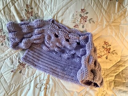 Textured with raised stitches throughout. Unique neckline motif. Chic and stylish. Simple crochet stitches used.