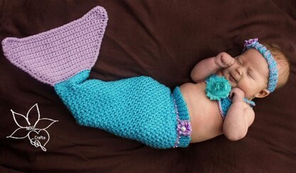 This pattern works well when accented with two colors, pearls and flowers or just left without anything special. Regardless, it's a beauty! It has a great stretch to it and isn't to long or to short. The unique stitch pattern makes for a fantastic "mermaid" look without being distracting from the main attention grabber... the adorable baby!