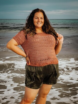 This pattern is the "little sister" to the original DK weight Mesa Top. Made in fingering weight yarn, its perfect for the summer. Written in 7 sizes from 36" to 60" with a cropped length but has instructions to lengthen the top if wanted/needed. Yardage(approximations due to customizable length): Size 1 36" bust-750 yds Size 2 40" bust-900 yds Size 3 44" bust-1000 yds Size 4 48" bust-1150 yds Size 5 52" bust-1250 yds Size 6 56" bust-1400 yds Size 7 60" bust-1550 yds All sizes listed are finished bust measurements with the 2" of positive ease included.
