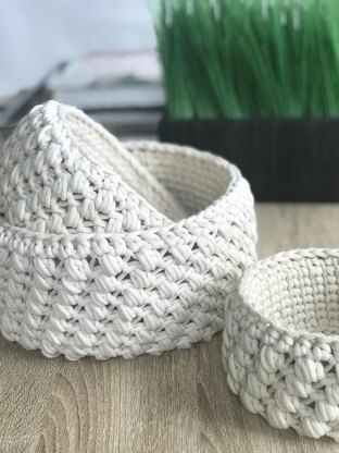 The Nido Nesting Basket Set features a modified puff stitch that creates a beautiful texture. Double lined sides with a plastic insert makes these baskets super versitile + functional. The perfect catch-all basket for your laundry, bath, bedroom or wherever else you want to add a touch of modern homemade to your home. Fun fact: Nido means "nest" in Italian.