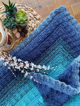 Shawl measures"64" (165 cm) wide x "29"(74 cm) deep at center point. 2 skeins of Red Heart "It's a Wrap" Rainbow