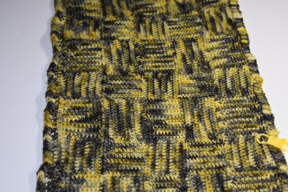 So when I was presented the opportunity to design for Forbidden Fiber Co special Harry Potter Collection celebrating its 20th anniversary ~ I knew I had to incorporate the Hufflepuff characteristics with all that is going on in our fiber community. Thus came about, the Oduffers Cowl, worked in crochet entrelac and adorned in 3hdc-puffs.