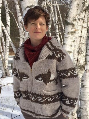 The First Nations people of Vancouver Island in British Columbia, Canada are known as the Coast Salish people. Having a cultural tradition of weaving and spinning dog and goat hair, they were introduced to sheep and to knitting in the 19th century. The sturdy, long-wearing Cowichan sweaters evolved over time and have been made from the knitters' own handspun yarns with wonderful motifs that reflect their connection with nature. The techniques the knitters employ are unusual and are included with explanations in this garment pattern.
