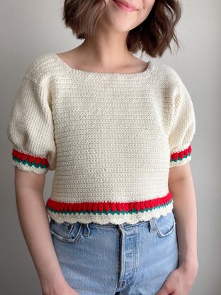 The Rose Top is a feminine pattern with beautiful features - puffed sleeves, rose detailing and scalloped edging. This pattern is made to measure, making it inclusive for everyone! Materials Used: - (4) Medium Weight Yarn in 3 colours. - 4.0 mm Crochet Hook - Stitch Markers - Yarn Needle