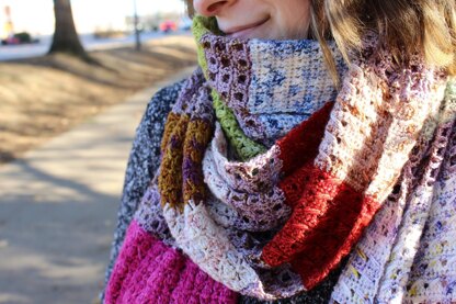 The Show Stopper Scarf is worked flat in rows with color changing when as directed.