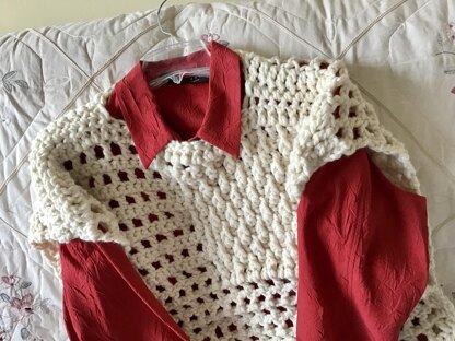 Textured with raised stitches throughout. Perfect over a blouse or tank top. Simple crochet stitches used.