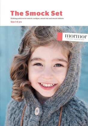 The Smock set consists of three patterns: Smock cardigan with hood, hat smock and mittens smock. The smock cardigan was Mormor's first cardigan and continues to be one of our most popular designs. The smock pattern creates an isolating layer which is warm and it has a bit of give to it when used. This means the child will fit this for longer than normally, as the cardigan is designed with extra length in the body and sleeves. The smock mittens are worked in the same yarn as the cardigan, but with double strands to keep the hands warm. The hat has double rib, so it offers extra heat on the ears and forehead. The smock set is really a warm set designed for extra cold weather. Enjoy the knitting!
