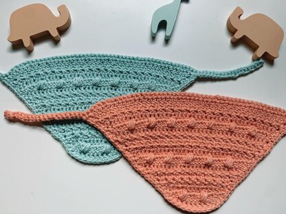 This is a pattern for a beautifully textured and unique baby bandana . Made with a super soft Cotton/Acrylic blend yarn, the stitches used give this piece a distinctive and adorable look that is irresistible and would make a great gift for a newborn, baby, or baby shower!