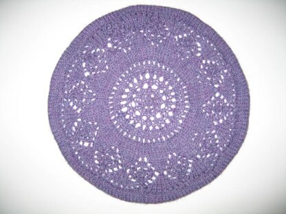 This is an original design by Mary Triplett. It was take from an old doily pattern and converted into a tam. The pattern comes with matching fingerless mitts.