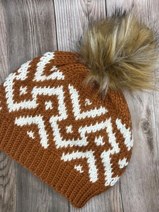 This luscious, squishy hat is just perfect for gifting or selling, and is a real showstopper paired with an enormous pom on top. It is a quick and fun project and is great for stash busting. The colorwork would be described as beginner, with minimal need to catch floats, making this pattern perfect for those learning how to do fair isle knitting hats.