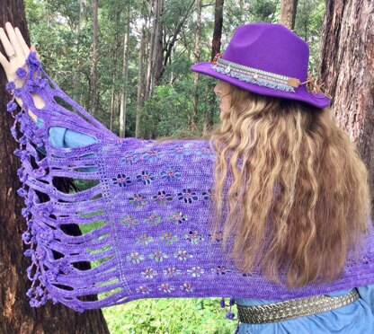 The idea for this shawl sprang from my vision of a wild garden. There is no real rhyme or reason to this piece, it just is!