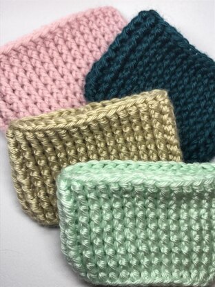 It is ideal for worsted weight / Medium 4 weight yarns (Big Twist and Caron Simply Soft yarns were used for the items in the images above). Required hook size and approximate yardage are specified in the patterns. The finished coffee cozy is standard size and should fit most mugs.
