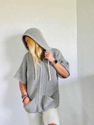 This is a crochet pattern for the Taylen Hoodie, an easy and versatile cardigan with a hood and zipper that will pair perfectly with all your favorite outfits. It is made from simple single crochet and chain stitches, creating a beautiful and modern texture.
