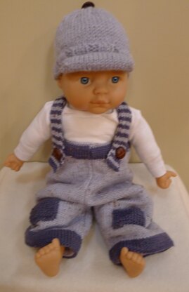 This is an over the top cute little set of baggy pants with braces and a newsboy cap for your new arrival or to make for someone you know who is having a baby. Knitted in 8ply (DK) and Aran (10ply) for the peaked cap it is both a quick knit and sure to keep the chills away. The pants feature a contrast waistband and cuffs and also have elastic at the waist. The braces cross at the back and button at the front with traditional style leather look buttons. Patches on the knees complete the look. A gorgeous little peaked cap with a button on the top finishes off the outfit perfectly. I think this outfit would look equally cute on a little girl.