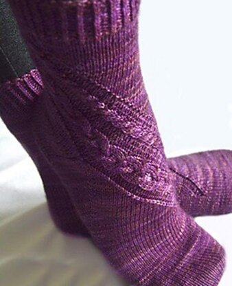 The Twist socks are a fun pair to knit up for any cable lover. They take classic cables on a journey as they slowly migrate across the top of the foot around the ankle mirroring one another.