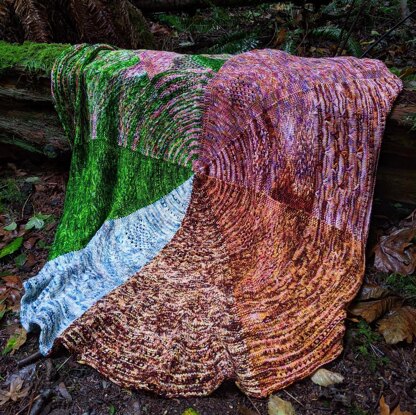 Pick your preferred circular shawl shape and dive into your DK-weight stash. This shawl devours yarn and works up quick, and you can easily add more spokes to change the final size and shape at any time! Choose colors that represent each season to you or an assortment of your favorites, and get ready to wrap up in this generously-sized shawl.