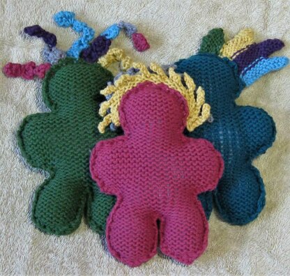 You’ll have great fun knitting up Sidney, Riley, and Frankie--three wild bunch friends ready to be part of a child’s world of wonder and play. Their bodies are done in bright colors of reverse stockinette stitch. Each is distinctive, and it shows in the wild top mops. Sidney has a wind-blown look in stripes while Riley shakes it up with bubbly strands sticking out every which way. Frankie’s bursting rays shine like the sun with picot edging. Work up a crowd of the wild bunch for someone special and watch imaginations ignite.