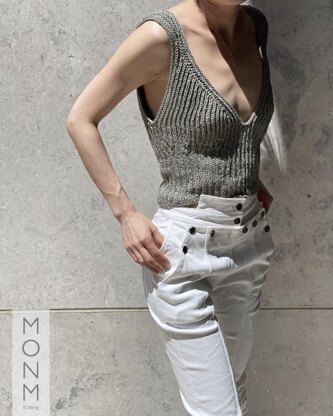 Thena top is worked from top down in sections, then join together in brioche stitch with two strands of cotton-linen fingering yarn.