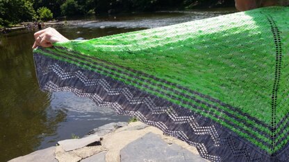 The main body of the shawl weaves on itself with a faux smocking stitch, and overlooks the river in the border, just like the poem says!