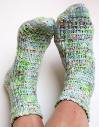 Third Avenue Socks are inspired by the textures found in urban cityscapes and feature a weave-like slip stitch pattern and eye of partridge heel. The result is squishy and works equally well with highly variegated, speckled, or solid yarns. Prior experience with sock knitting is recommended but not required for this pattern.