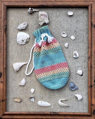 This is such a fun beach bag to make. I used Caron Cotton Cake (540yds) and a 5mm H hook. It works from the bottom up using hdc and a granny hdc. I chose to use a twisted rope for the drawstring but feel free to be creative with your handle. I would love to see your bag so please upload a photo to my projects once you finished. I hope you enjoy. Finished bag is approximately 18" x 10"