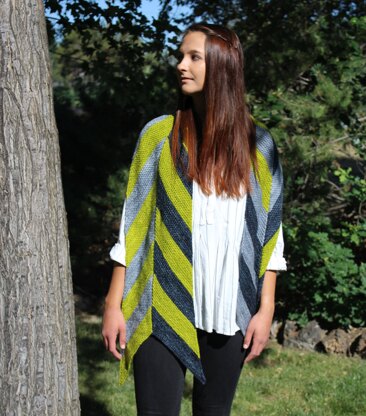 Thornback is a uniquely constructed shawl/wrap. This is knit flat and sideways with a mix of 3 colors.