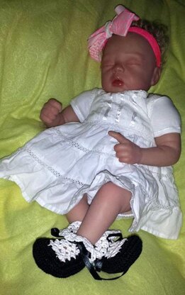 This pattern is inspired by a FREE pattern by "Princesse X" I found at this web address : http://beadz-yarn-stuff.blogspot.com/2009/08/baby-booties.html . The sizing was not what I needed, Nor do I own any hooks or crochet thread that small. I also felt it had too many joins, so I revamped and am offering it free, because if I needed these edits then maybe you do as well. :)