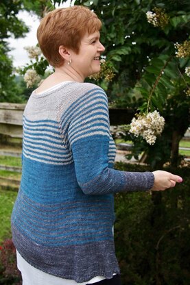 Yarn: Dragonfly Fibers Dance Rustic Silk (100% silk noil; 450 yards per 4 oz skein); 3(3, 3, 3, 4, 4) skeins: 1 Color A, 1(1, 1, 1, 2, 2) Color B, 1 Color C.