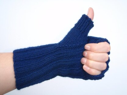 Pattern photos show mitts on a medium sized woman's hand. The ribbing allows the mitts to fit a wide range of sizes, resizing instructions are given.