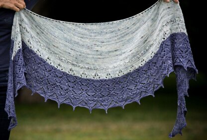 Tidal Zone is a crescent shaped shawl embellished with a lace and cable motif that expands organically from a band of lace worked in the middle of the shawl. Multiple colour options are outlined in the pattern: combine your favorite speckle yarn with a semi-solid for a two-toned shawl, or simply use a contrasting stripe of colour for the first lace band. A single colour version is equally as dramatic - simply ignore all colour change directions to achieve an elegant and visually appealing hug for your neck.