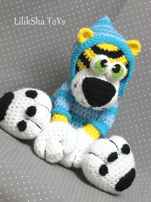 Materials: Acrylic yarn, worsted weight (200 m/100g) Colors:yellow, black, white, light green and green. F hook (3.5-4 mm) Felt of the following colors: white, black, Stuffing, needles, scissors.