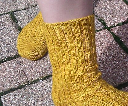 These are top-down, smocked bamboo rib socks with a traditional slip-stitch heel flap.
