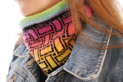 This stranded colorwork cowl features a repeating geometric pattern framed by hemmed edges. It begins with a provisional cast on and ends with grafting live stitches to the knit fabric. A photo tutorial is included in the pattern for the latter.