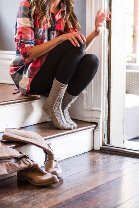 Written in 4 foot widths, the sock is easily customizable to foot length and leg height just by adding more or less of the 2 pattern row repeats once the slanting cables are established. Notes are included to help create a larger leg for those who may have thicker calves than others.