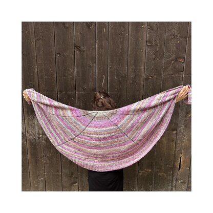 To begin, a few stitches only are cast on. Increases worked regularly are forming the crescent shape. As a plus, decorative increase lines are created. The main pattern is stockinette stitch (knit in right side rows, purl in wrong side rows).