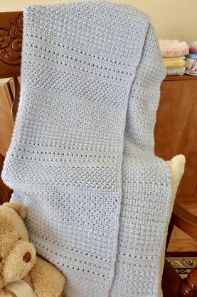 Crocheted with Lion Brand Baby Soft, a lightweight #3 yarn, this baby blanket blends cozy texture with timeless charm. The design features a beautiful mix of stitches—the Prairie Stitch, Moss Stitch, Baby Bean Stitch, and a gentle combination of single and double crochets—creating a soft, modern texture that’s perfect for little ones. Designed with practicality in mind, this blanket is machine washable and dryable, making it as durable as it is beautiful. It’s a wonderful choice for everyday snuggles, thoughtful handmade gifts, or donations to a special charity.