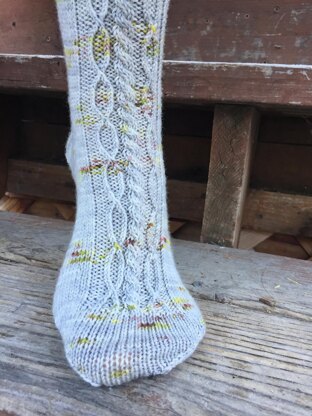 Tin Roof Socks are a wonderful way to knit up tonal or lightly speckled yarns. The cable pattern is fun and keeps knitting the sock engaging.