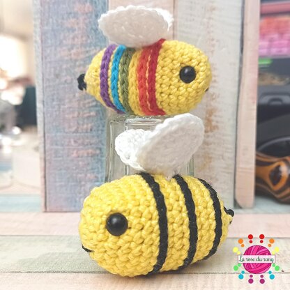 Affichez vos couleurs à l'aide de cette adorable petite abeille! Un petit patron tout simple auquel vous pouvez ajouter une cordelette pour transformer ce mignon petit amigurumi en décoration pour votre sac!