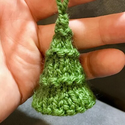 This Tiny Tree Ornament is adorable in person. It sits about 2.5 inches (6cm) tall. It is well supported by a second inner layer; a tree shaped cone that folds inward... And your ends run through the work to become a decorative bow for hanging. Genius! No weaving in!
