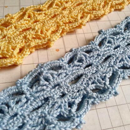 Crochet lacy headband pattern includes:
