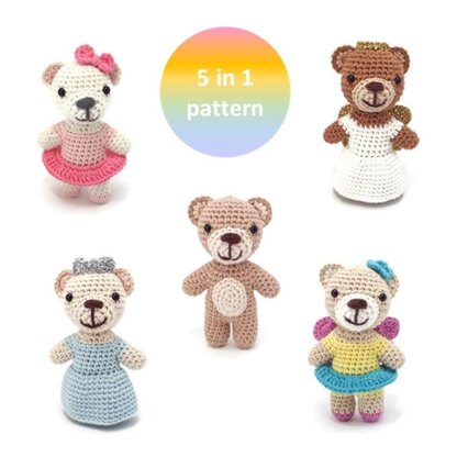 Crochet these tiny teddies yourself as a perfect gift for a child or just because they’re adorable! Choose from 5 different teddy bear designs: Princess, Angel, Fairy, Ballerina or Basic.
