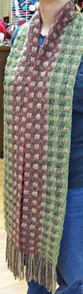 This lengthwise worked scarf combines knitting with weaving techniques.