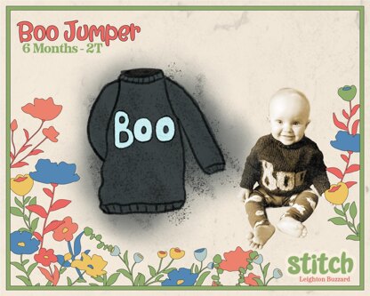 toddler jumper Sizes 6 months, 12 months, 18 months and 2T Pattern includes instructions to knit jumper top down in the round and pattern chart for the BOO motif.