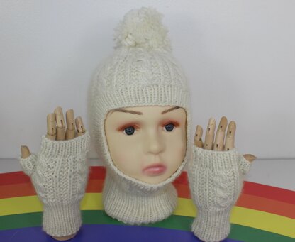 Toddler & Child Aran Cable Balaclava & Fingerless Gloves