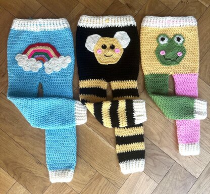 The leggings can be made in any colour and comes with a selection of motifs to choose from to place on the bum of your leggings. They also come in three different sizes 12 months, 18-24 months and 24-30 months. I have designed the leggings to be baggy and to accommodate a nappy and has a tie waist.
