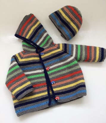 A lovely soft garter stitch jacket thats so easy to knit, I love to make my friends a little jacket for their babies, one thats easy to wear, wash, and dry in the lovely colours of Paintbox Yarns. this one comes in two sizes 18' and 20" chest and has a matching hat for those extra windy/chilly days