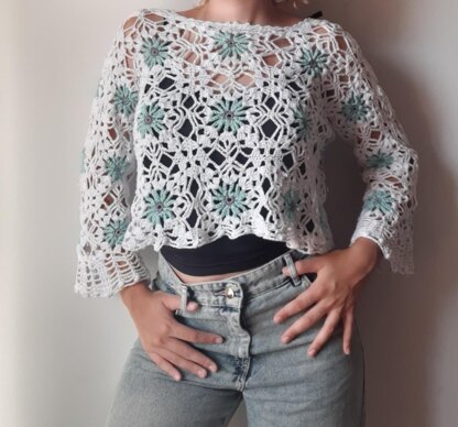 This top embodies elegance with a touch of vintage charm, celebrating the bond between generations and the beauty of handmade tradition. Wearing it feels like carrying a story of affection and strength, woven into each detail.