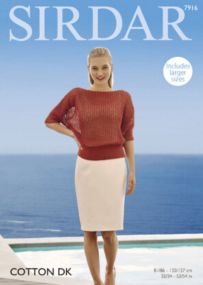Top in Sirdar Cotton DK - 7916 - Downloadable PDF est un modèle de Tricot Intermédiaire par Sirdar, disponible au format PDF téléchargeable et comprend des instructions en Anglais. Super amusant à réaliser, ce modèle pourrait être votre prochaine œuvre d'art !