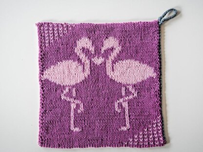 Die Topflappen werden in Doubleface gestrickt, so dass beide Seiten gleich schön aussehen. Der Henkel und der einseitige Rand werden gehäkelt. Durch das doppelte Stricken werden die Topflappen schön dicht und halten die Hitze gut ab.